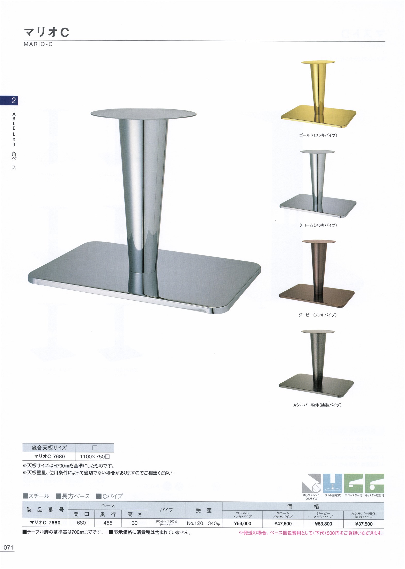 マリオC7680 クロームメッキ 塗装パイプ 適合天板1100×750