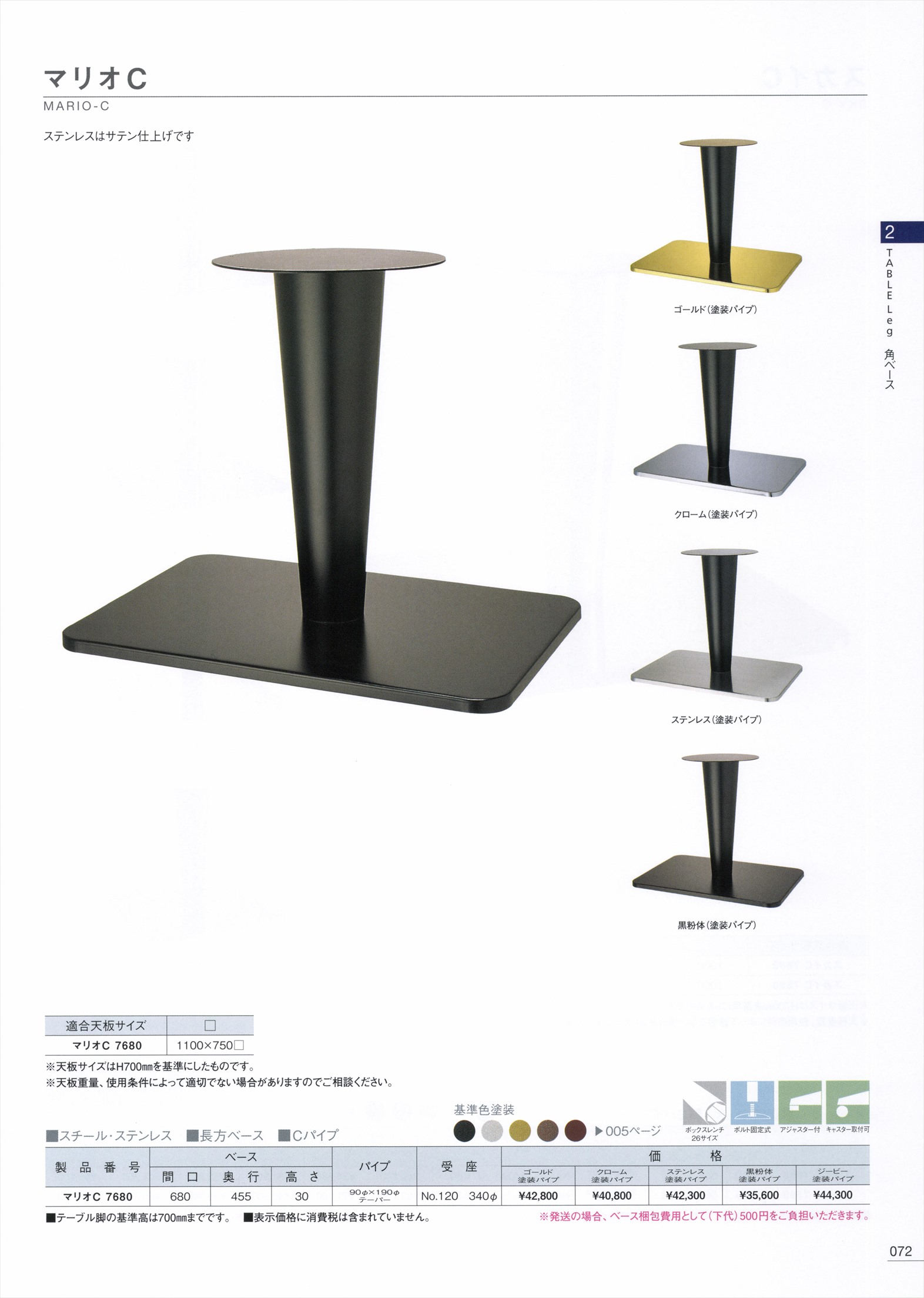 マリオC7680 ステンレス 塗装パイプ 適合天板1100×750