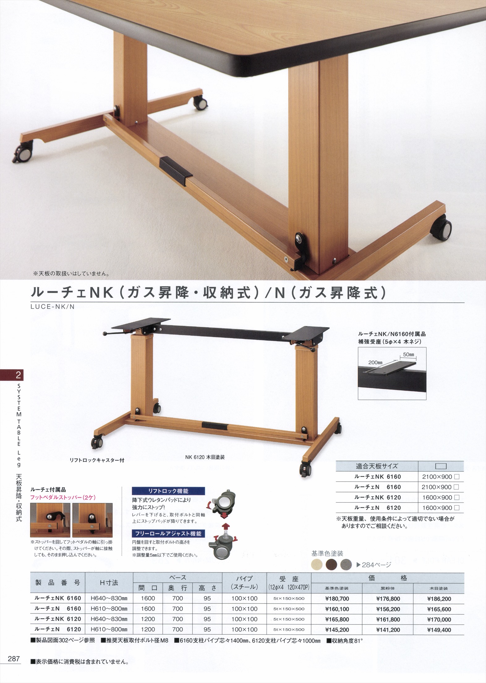 ルーチェN6120昇降式 天板適合1600,900 木目メラミン塗装